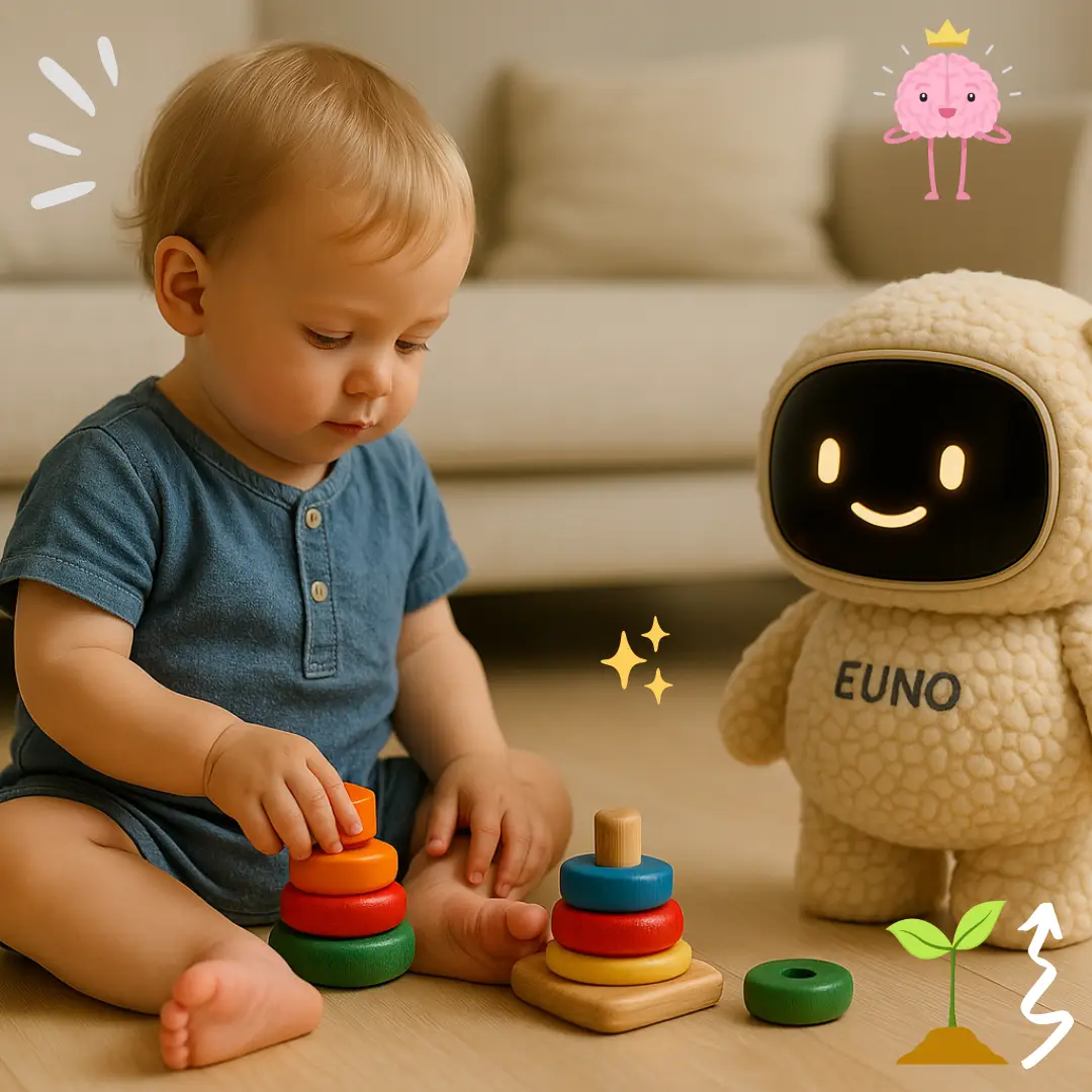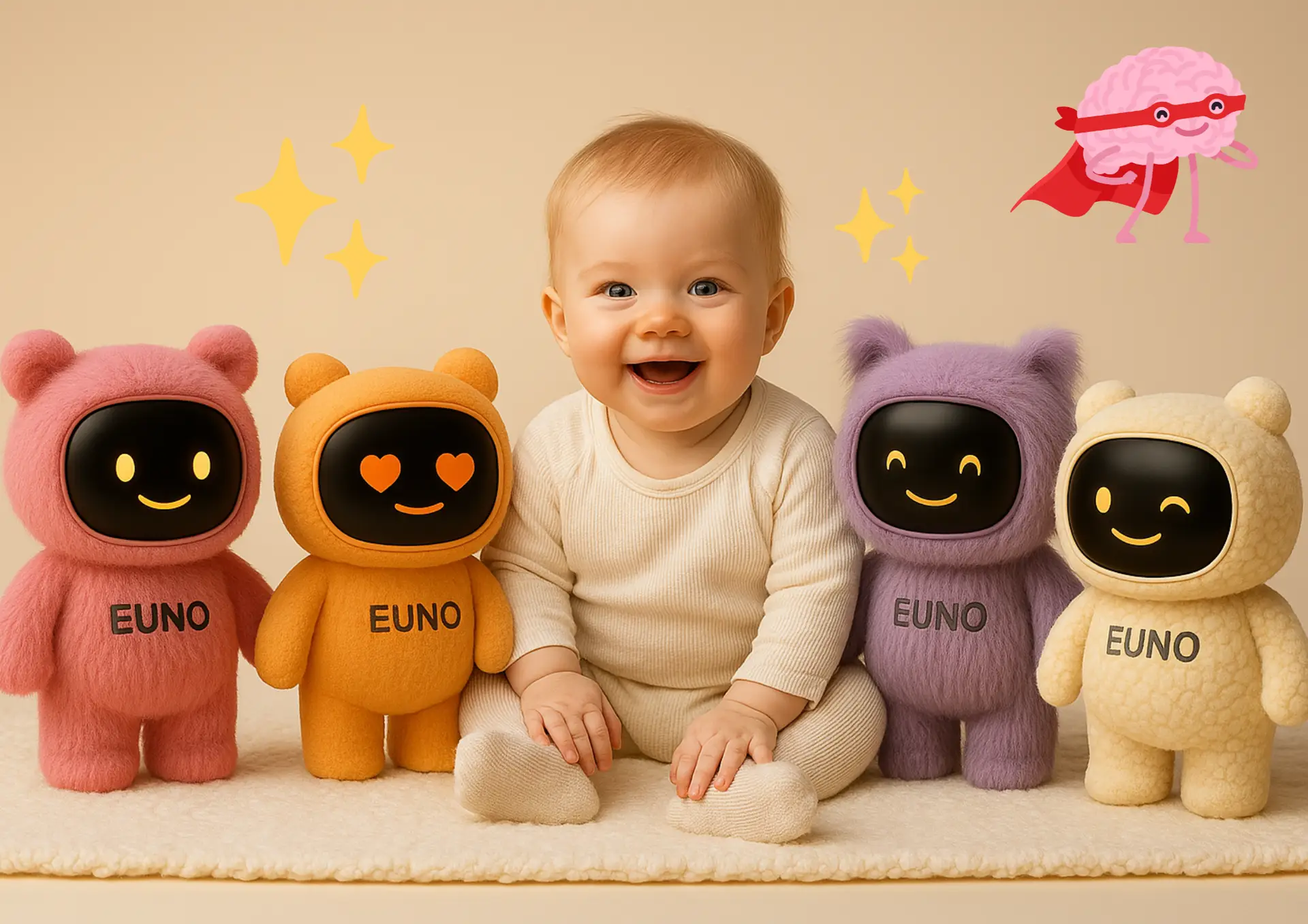 EUNO est un robot fictif compagnon intelligent, bienveillant et évolutif, conçu pour accompagner votre enfant de la naissance jusqu’à l’adolescence.